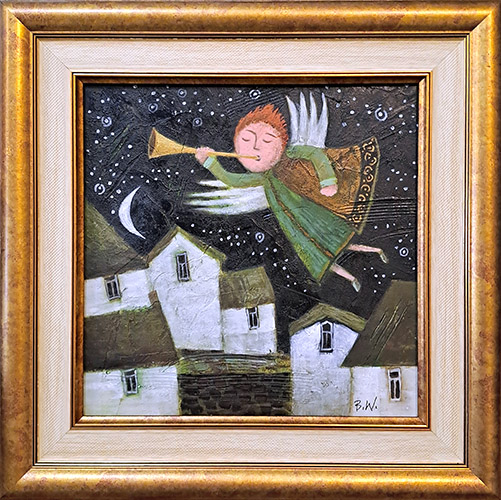 obraz wielkości 20 x 20 cm namalowany na płycie , oprawiony, rozmiar zewnętrzny ramy 29 x 29 cm