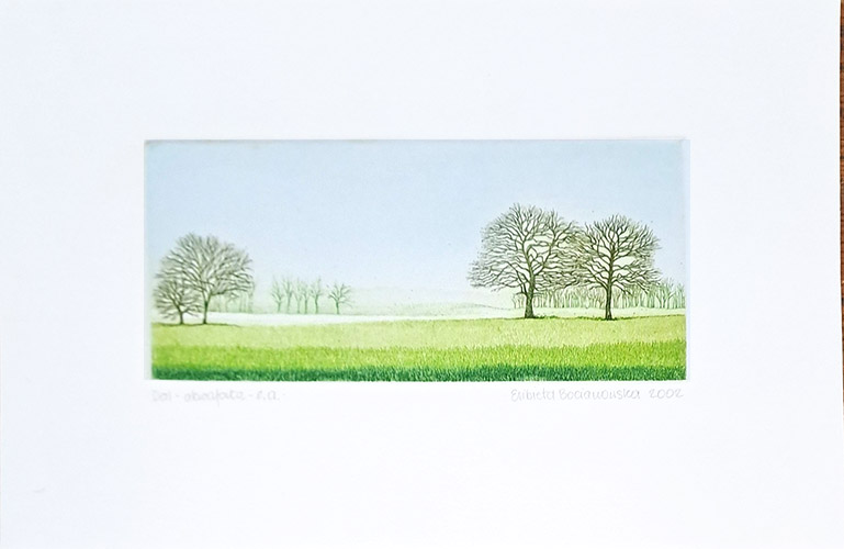 grafika wielkości 16 x 7 cm nieoprawiona, rozmiar zewnętrzny kartonu 24,5 x 16,5 cm
