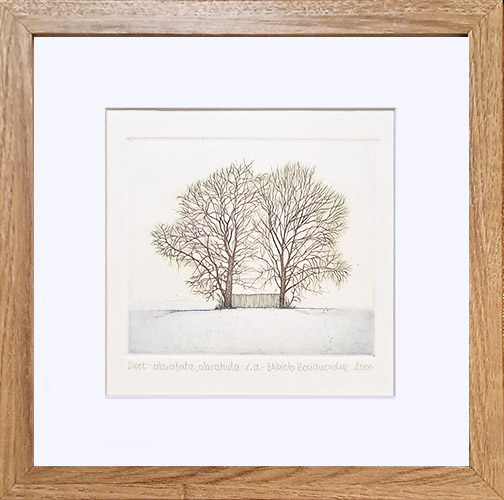grafika wielkości 11 x 11 cm, oprawiona, za szkłem, rozmiar zewnętrzny ramy 22 x 22 cm