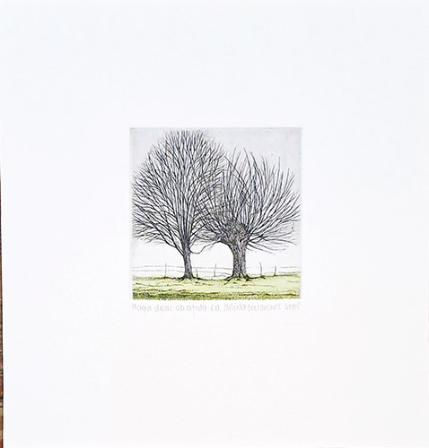 grafika wielkości 6,5 x 6,5 cm, nieoprawiona, rozmiar zewnętrzny kartonu 16 x 16 cm