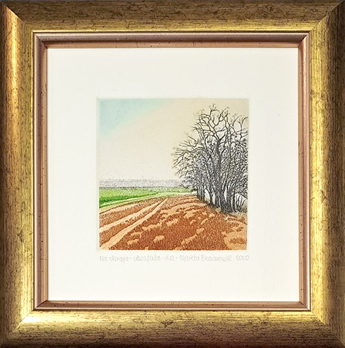 grafika wielkości 8,5 x 8,5 cm, oprawiona, za szkłem, rozmiar zewnętrzny 19,5 x 19,5 cm