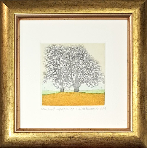 grafika wielkości 8,5 x 8,5 cm, oprawiona, za szkłem, rozmiar zewnętrzny 19,5 x 19,5 cm