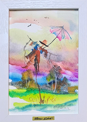 akwarela wielkości 10 x 15 cm, oprawiona, za szkłem, rozmiar zewnętrzny 12 x 17 cm