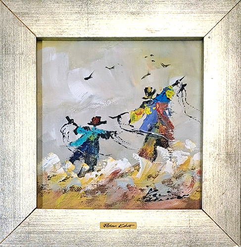 obraz olejny namalowany farbami olejnymi na podobraziu wielkości 15 x 15 cm, oprawiony, rozmiar zewnętrzny ramy 20 x 20 cm