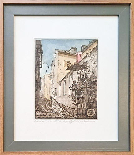 grafika wielkości 12 x 16 cm, oprawiona, rozmiar zewnętrzny 24 x 29 cm